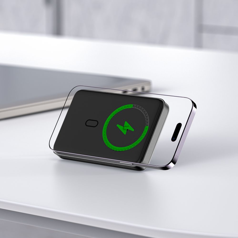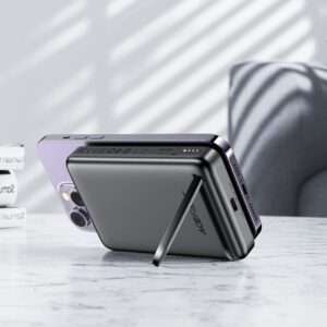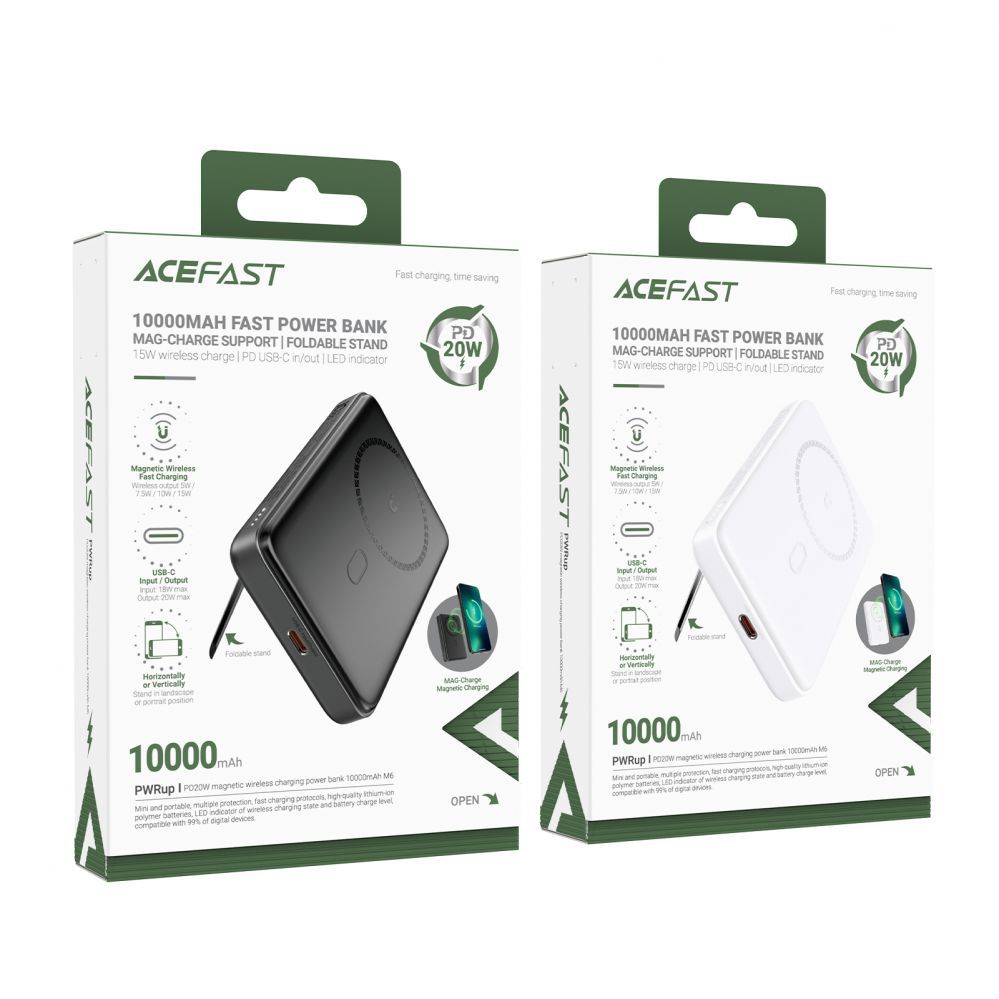 - It has a built-in stand . It is equipped with strong magnets that perfectly hold the device in one position. With one hand movement, you can turn the Acefast M6 inductive power bank into a convenient smartphone stand.