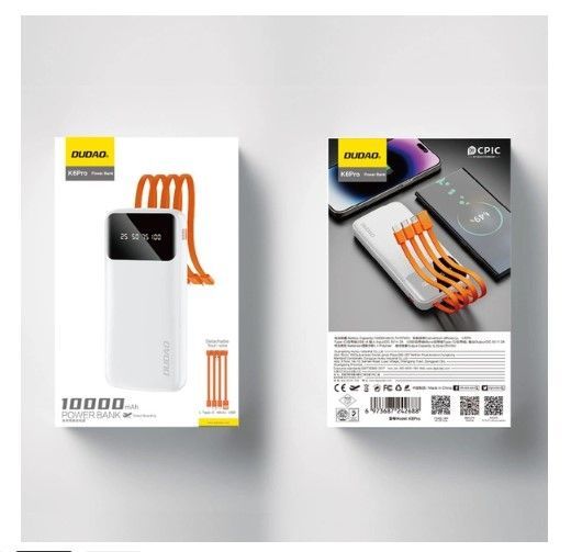 - You don’t have to remember to bring your charging cables with you ! The Dudao K6Pro Power Bank has built-in cables with the most popular plugs: micro USB, USB Type C and Lightning