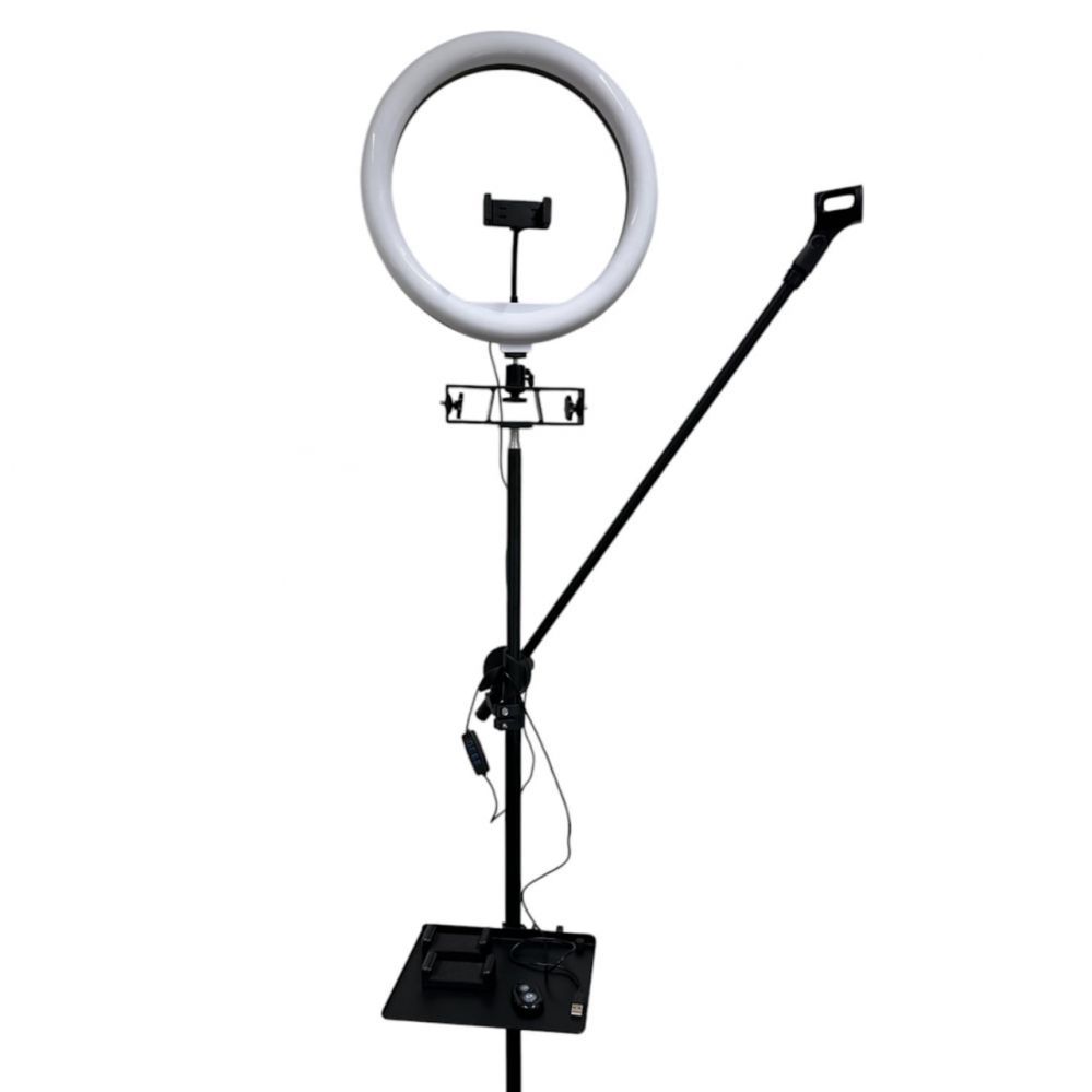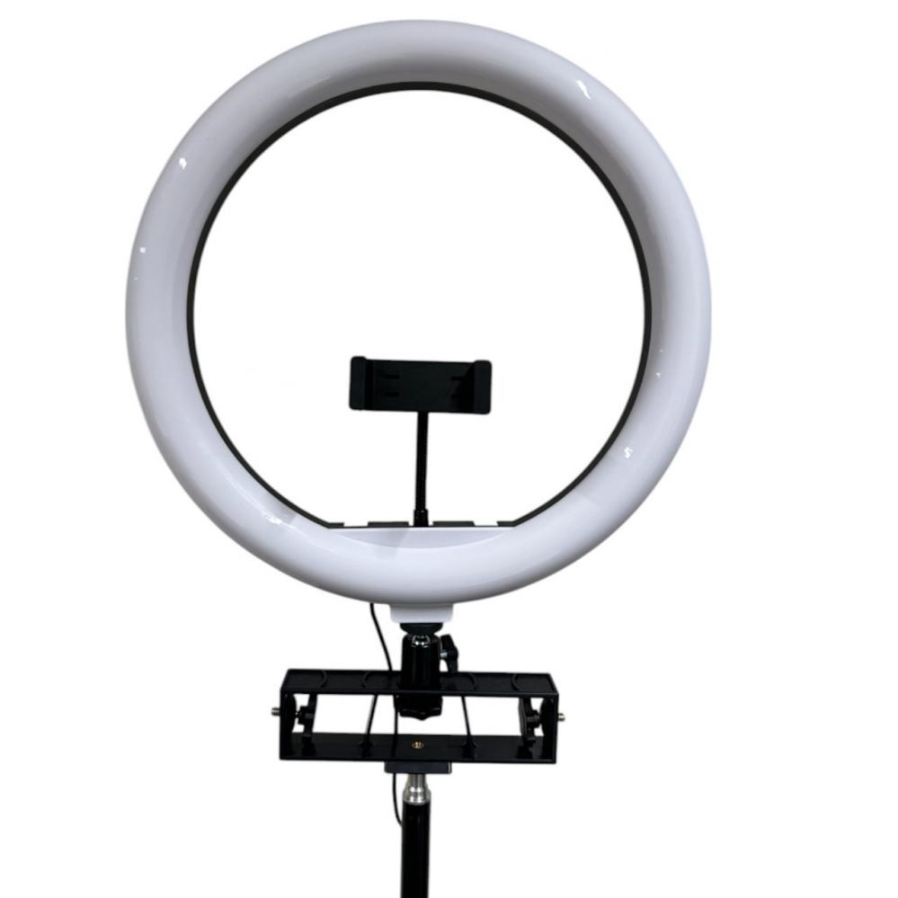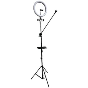 Ring Holder iLike S14 LED Selfie 36cm Ring Light Lamp + Tripod Stand 2.1m + Shelf & 3x phone / Mic Holder Black
