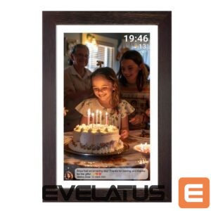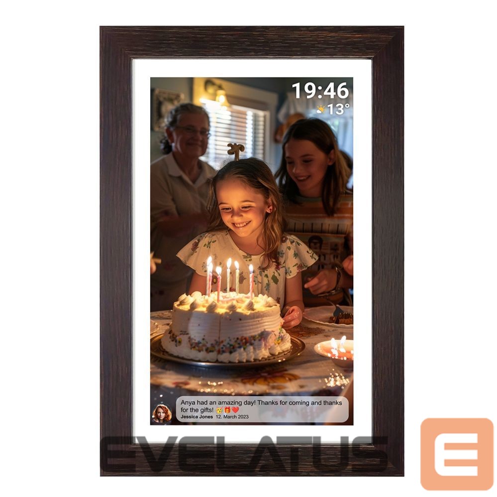 The Denver Frameo PFF-1543DW is a 21st century digital photo frame that lets you enjoy photos and videos in one elegant device. With a 15.6-inch IPS touchscreen with Full HD resolution, this frame takes your memories to the next level, revealing every detail and color. With the FRAMEO app, you can wirelessly upload photos directly from your phone, and Wi-Fi connectivity makes sharing a breeze. The stylish brown casing complements any interior, and the versatile stand lets you position the frame vertically or horizontally. The Frameo PFF-1543DW also offers 16 GB of internal memory and the option to expand the space with a microSD card, making it the perfect solution for thousands of photos and videos. Choose the Denver Frameo PFF-1543DW and get a modern way to present your memories!