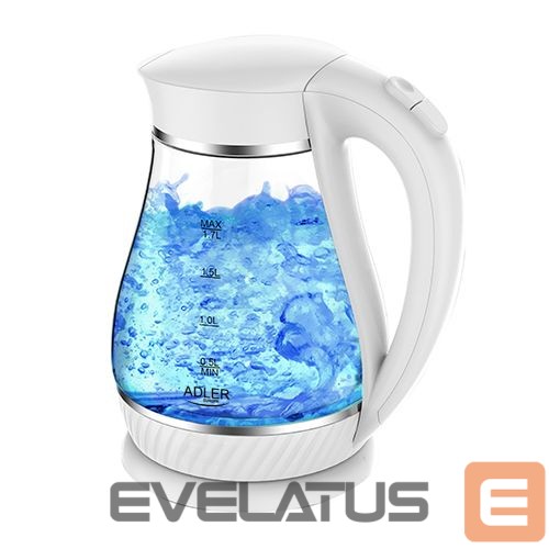 Teapot Adler Kettle AD 1274 Standard, Plastic, glass, White/ transparent, 2200 W, 360° rotational base, 1.7 L