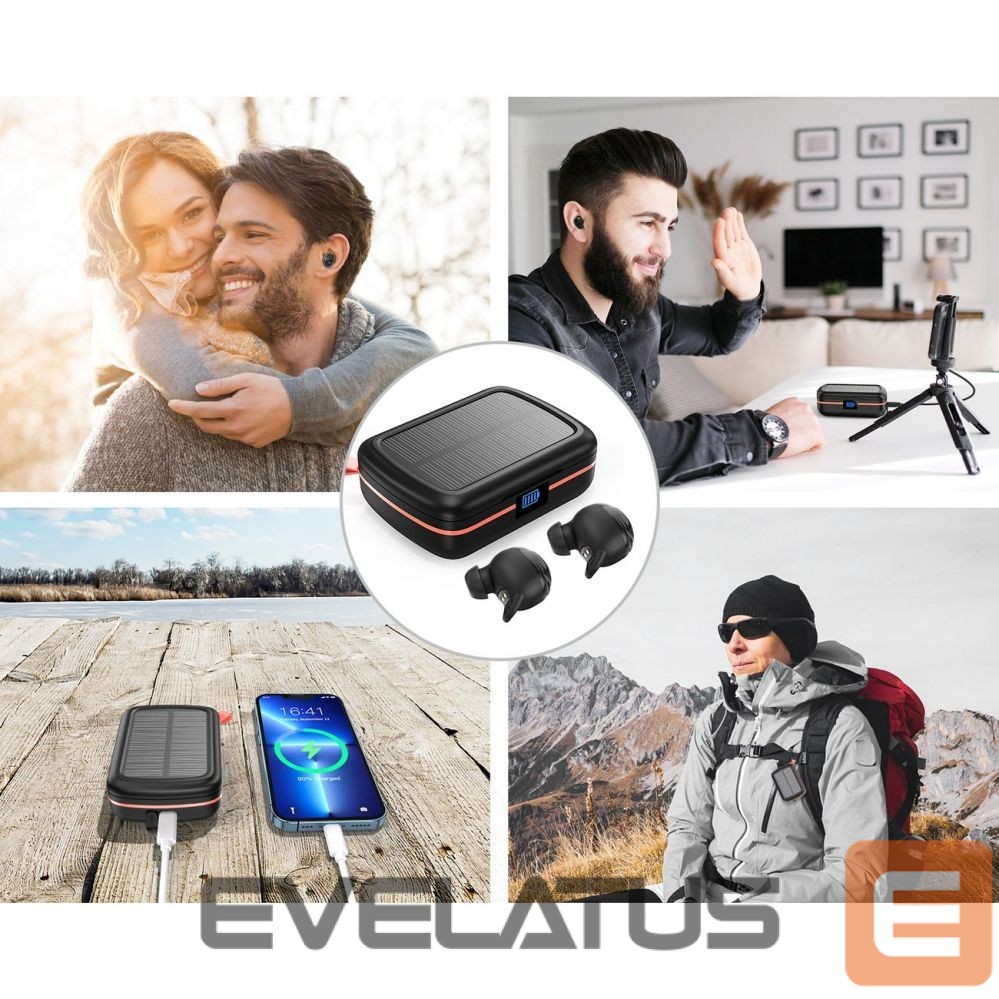Choetech TWS wireless headphones waterproof with solar panel and built-in 2500mAh powerbank black (BH-T05)