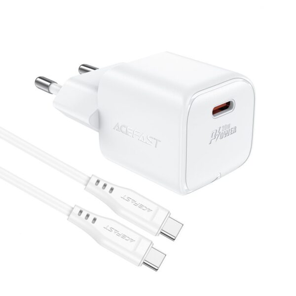 Acefast A73 Mini 20W GaN wall charger with Power Delivery technology + USB-C cable – white