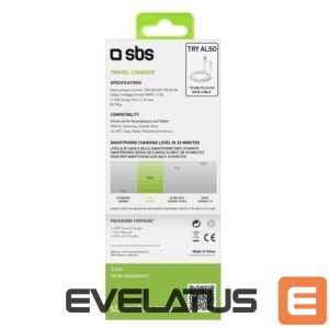 Discover the SBS TETR1USB2AWFAST wall charger, which is the perfect solution for people always on the move. Thanks to its compact design and versatility, this charger is perfect for every trip, allowing you to quickly charge your smartphone at any time. Equipped with Intelligent Charge technology, it automatically adjusts the charging power to your device, ensuring maximum efficiency. In just 30 minutes, you can charge your device's battery up to 50%! The simple and intuitive design makes it easy to use, and compatibility with a wide range of devices makes it an essential accessory for everyday use. Don't let a flat battery ruin your day – choose SBS TETR1USB2AWFAST!