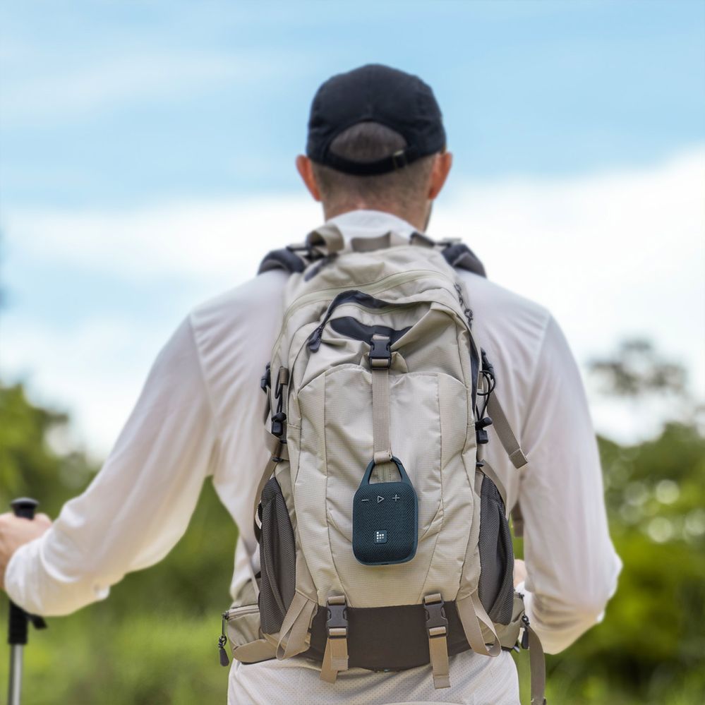 The practical and sturdy carabiner allows you to attach the speaker to a backpack, bike or belt – so you always have it at hand!