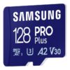 Atminties kortelės Samsung MicroSD Card with SD Adapter PRO Plus 128 GB, microSDXC Memory Card, Flash memory class U3, V30, A2, SD adapter