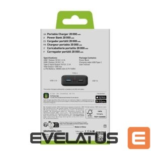 Išorinė baterija SBS Powerbank Puro Fast 20000 mAh 2x USB-A + 1x USB-C – black