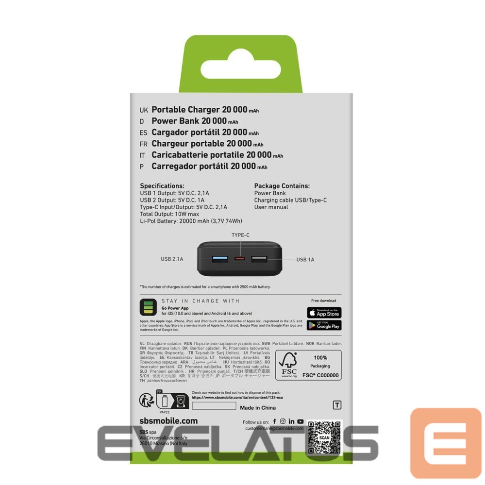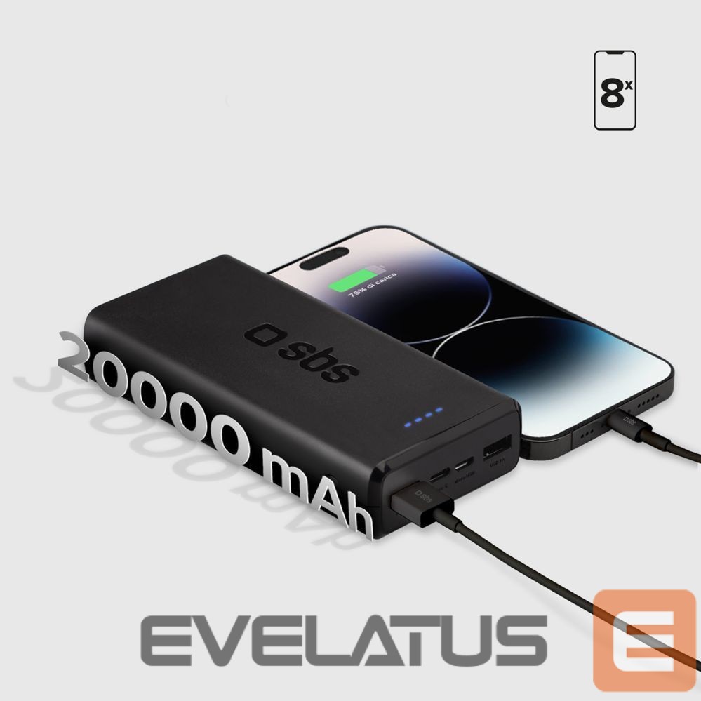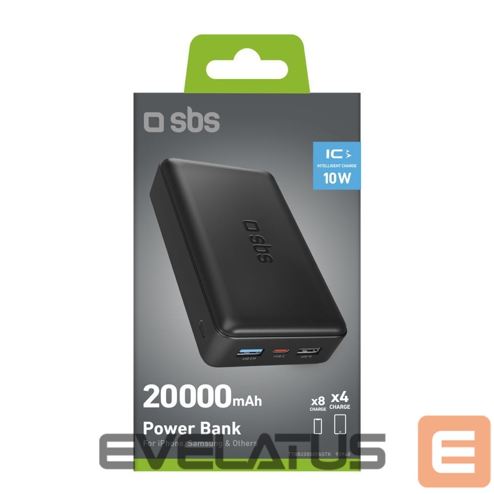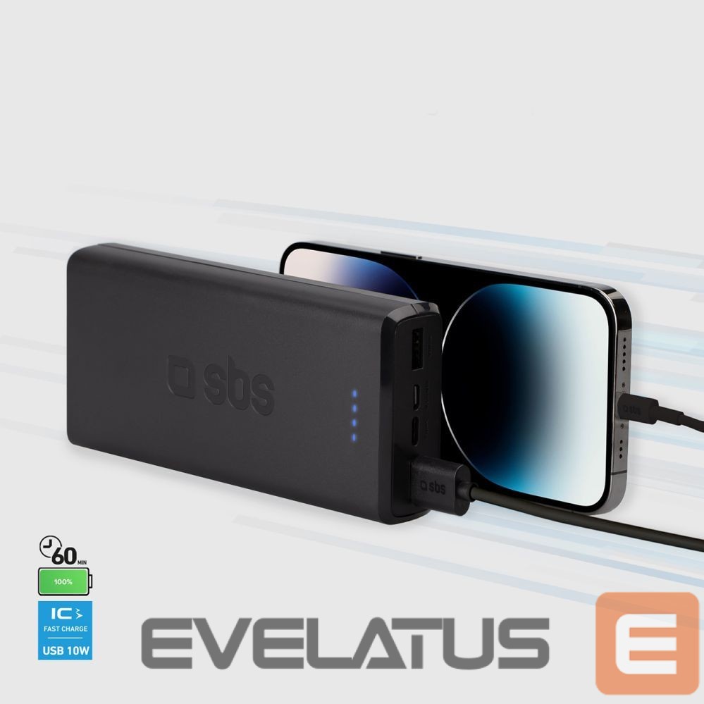 Išorinė baterija SBS Powerbank Puro Fast 20000 mAh 2x USB-A + 1x USB-C – black