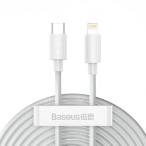 Baseus Simple Wisdom cable with Lightning / USB-C connectors, power up to 20W and 1.5 m long – white (2 pcs. in the set)