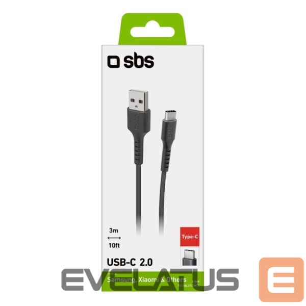 Kabelis SBS SBS TECABLETC3MTK USB-A – USB-C Cable 3m – Black