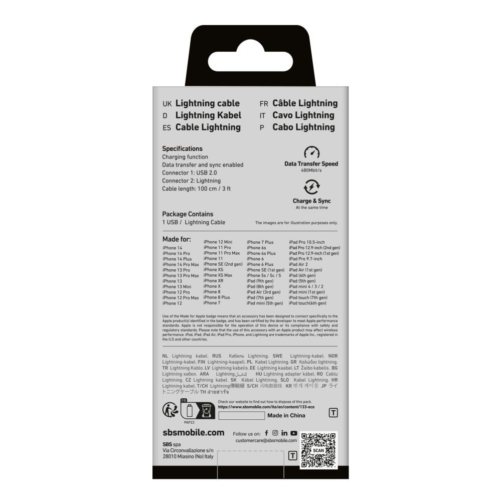With MFi certification, the SBS TECABLEUSBIP589A cable meets Apple stringent standards, guaranteeing perfect compatibility and security for your device.