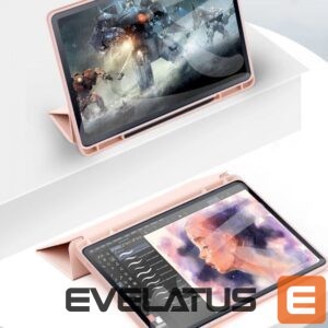 Thanks to the use of a concertina cover on the front side of the case, we gain protection for the display, and thanks to the technology of waking up and putting the device to sleep, we can ensure a slightly longer battery life. The case can also serve as a stand for more convenient use of the device.