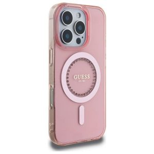 Kitas telefono priedas Guess Guess IML Rhinestones MagSafe iPhone 16 Pro Max Case – Pink