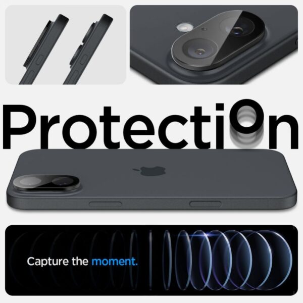 Kitas telefono priedas Spigen Spigen Optik GLAS.TR Camera Protector 2-PACK for iPhone 16 / 16 PLUS – Black