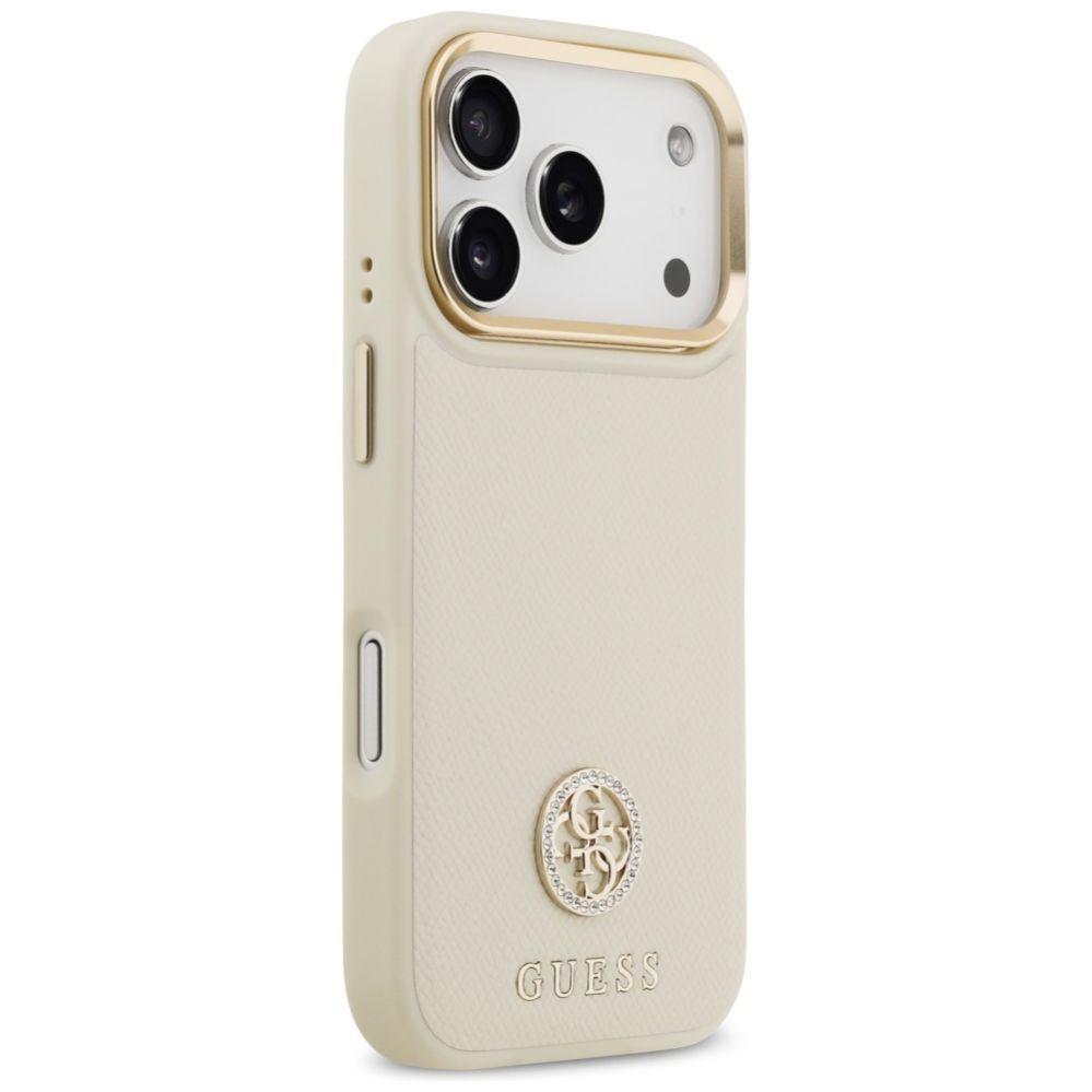Kitos prekės Guess Guess Grained Strass Logo MagSafe case for iPhone 17 Pro – beige