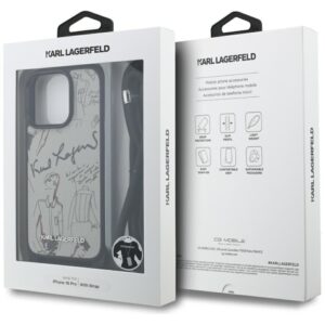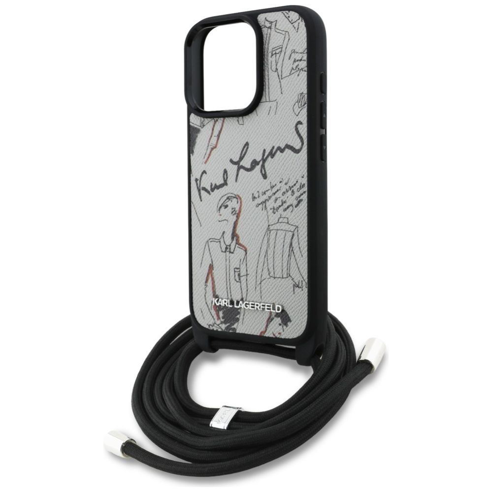 Kitos prekės Karl Lagerfeld Karl Lagerfeld Crossbody Grained Pattern & Logo Case for iPhone 16 Pro – Gray