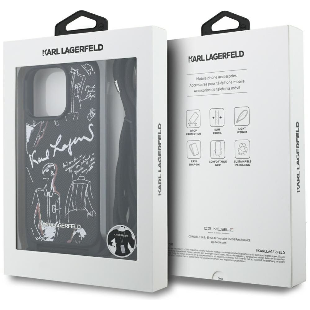 Kitos prekės Karl Lagerfeld Karl Lagerfeld Crossbody Grained Pattern & Logo Case for iPhone 16 Pro Max – Black