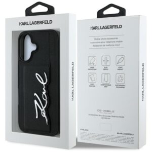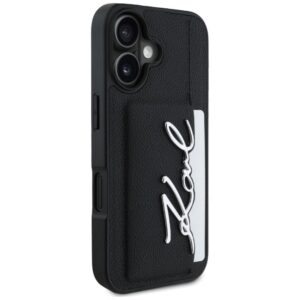 Kitos prekės Karl Lagerfeld Karl Lagerfeld HC Grained PU Cardslot Metal Signature iPhone 16 Case – Black