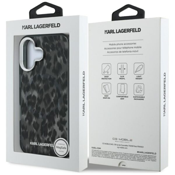 Kitos prekės Karl Lagerfeld Karl Lagerfeld IML Leopard Pattern MagSafe Case for iPhone 16 – Black