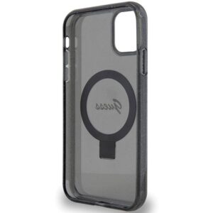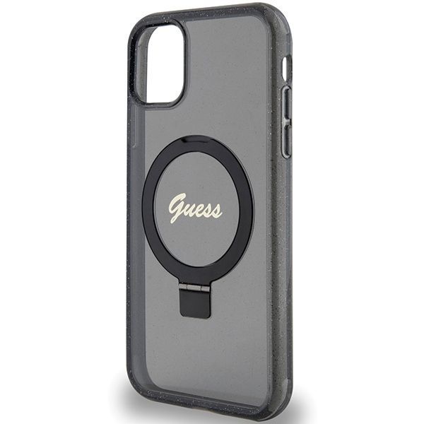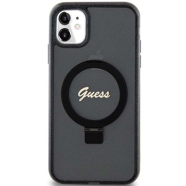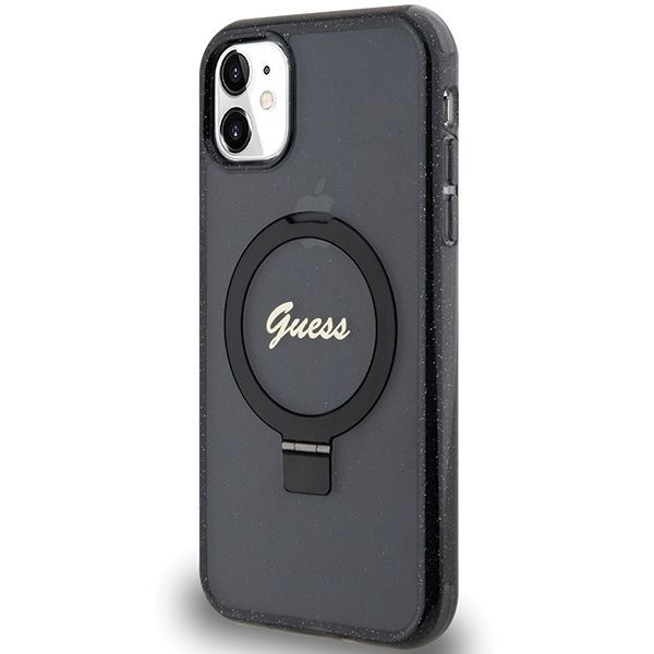 Nugarėlės dėklai Guess Guess Ring Stand Script Glitter MagSafe case for iPhone 11 / Xr – black