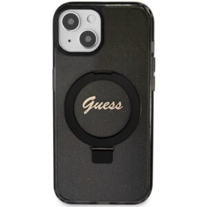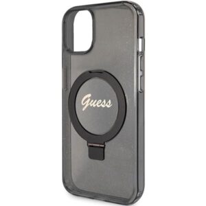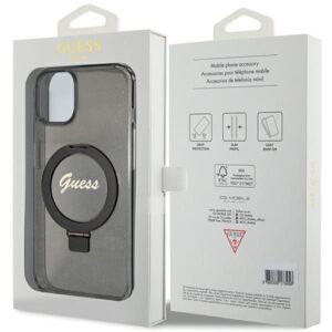 Nugarėlės dėklai Guess Guess Ring Stand Script Glitter MagSafe case for iPhone 13 / 14 / 15 – black