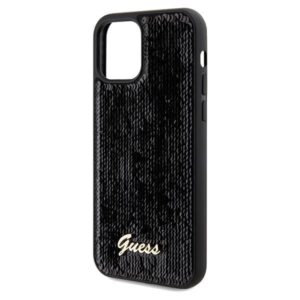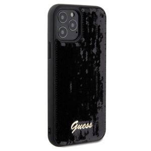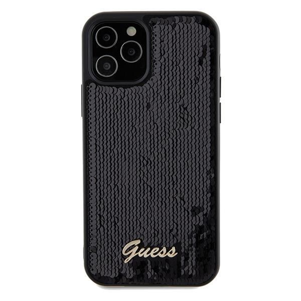 Nugarėlės dėklai Guess Guess Sequin Script Metal case for iPhone 12/12 Pro – black