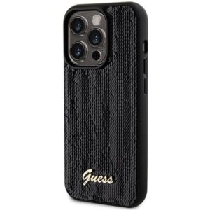 Nugarėlės dėklai Guess Guess Sequin Script Metal case for iPhone 13 Pro / 13 – black