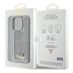 Nugarėlės dėklai Guess Guess Sequin Script Metal case for iPhone 15 Pro Max – silver