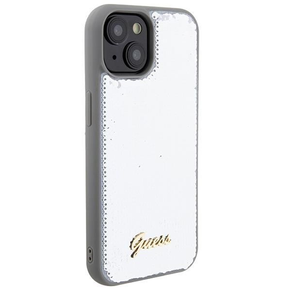 Nugarėlės dėklai Guess Guess Sequin Script Metal case for iPhone 15 – silver
