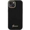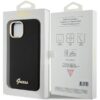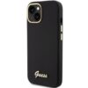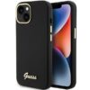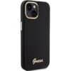 Nugarėlės dėklai Guess Guess Silicone Script Metal Logo & Frame case for iPhone 15 – black
