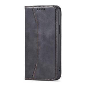 iPhone 14 Pro Max Magnet Fancy Case Flip Cover with Wallet Function and Kickstand Black