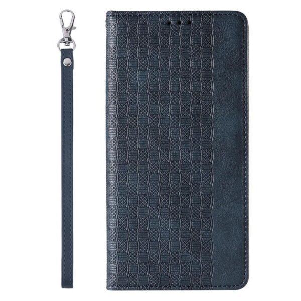 iPhone 14 Plus Series Magnet Strap Case cover with a flip cover with a wallet function and a stand in blue