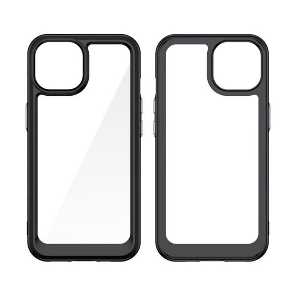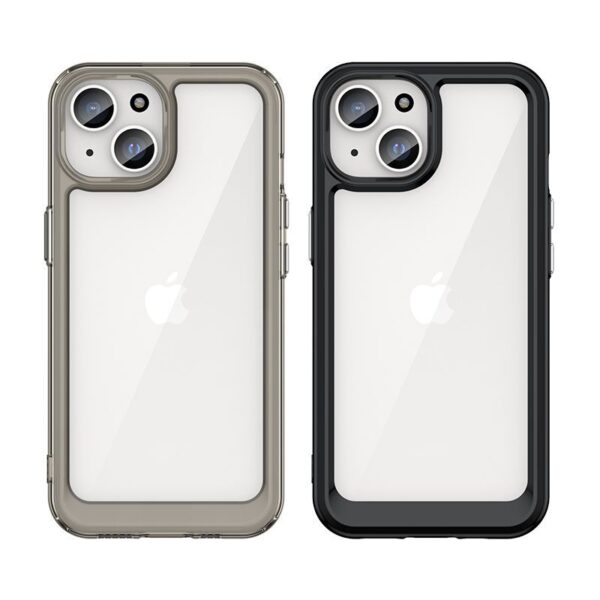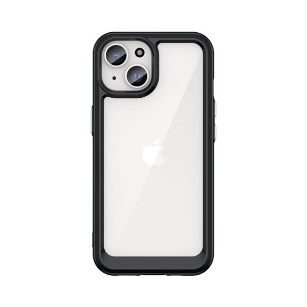 Reinforced iPhone 15 Plus case from the Outer Space Case series with a black gel frame