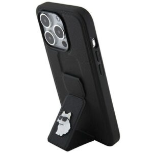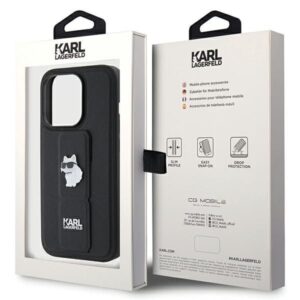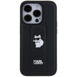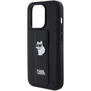 Nugarėlės dėklai Karl Lagerfeld Karl Lagerfeld Gripstand Saffiano Choupette Pins case for iPhone 14 Pro – black
