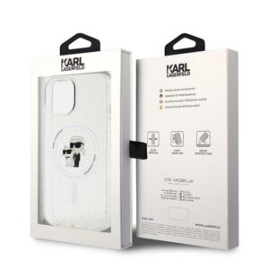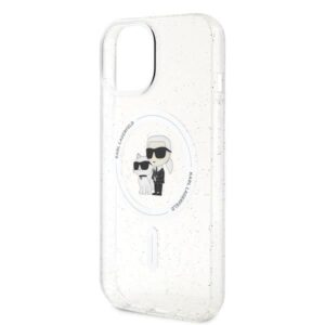 Nugarėlės dėklai Karl Lagerfeld Karl Lagerfeld Karl&Choupette Glitter MagSafe case for iPhone 15 Plus – transparent