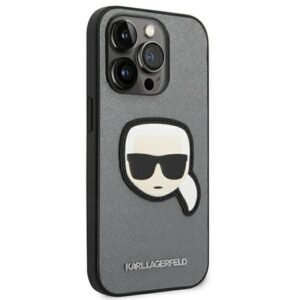 Nugarėlės dėklai Karl Lagerfeld Karl Lagerfeld KLHCP14XSAPKHG iPhone 14 Pro Max 6,7″ srebrny/silver hardcase Saffiano Karl`s Head Patch