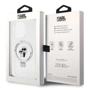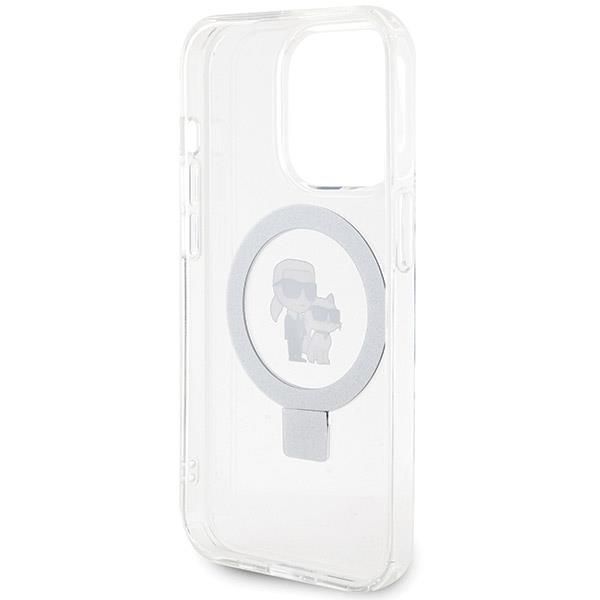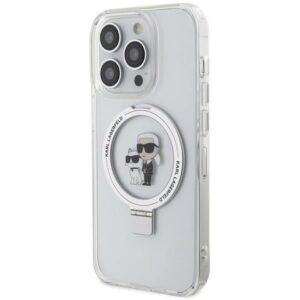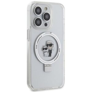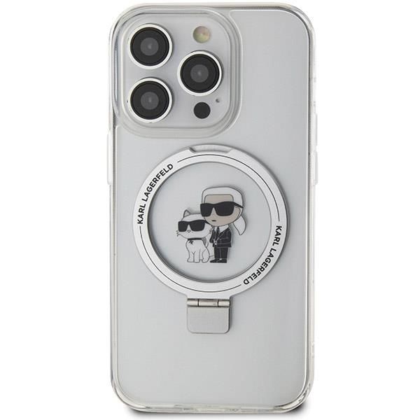 Nugarėlės dėklai Karl Lagerfeld Karl Lagerfeld Ring Stand Karl&Choupette MagSafe case for iPhone 13 Pro Max – white