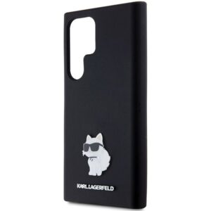 Nugarėlės dėklai Karl Lagerfeld Karl Lagerfeld Silicone Choupette Metal Pin case for Samsung Galaxy S23 Ultra – black