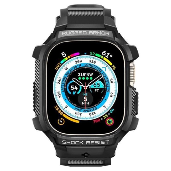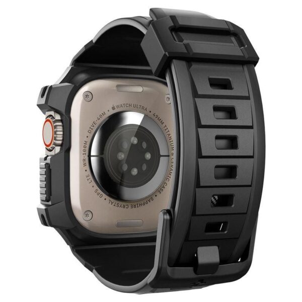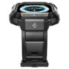 A comfortable, sporty strap Spigen Rugged Armor Pro made of flexible TPU material decorated with carbon fiber accents. It has an integrated housing with raised edges that protect the watch case from scratches and impacts. The strap is fully functional and can be adjusted according to individual needs.