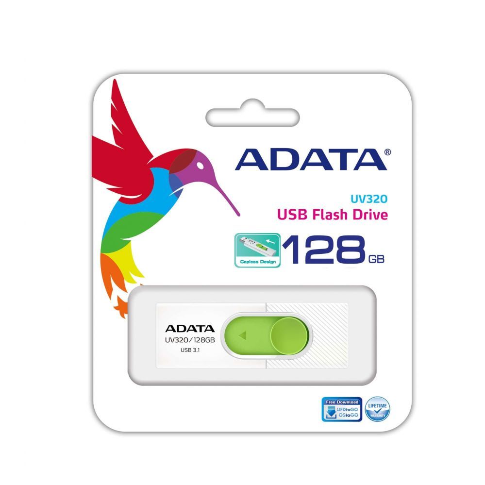 USB atmintinė ADATA AUV320 128GB USB Flash Drive, White/Green
