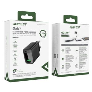 Adapteris Acefast Acefast A90 Charger GaN USB-A QC 18W – Black