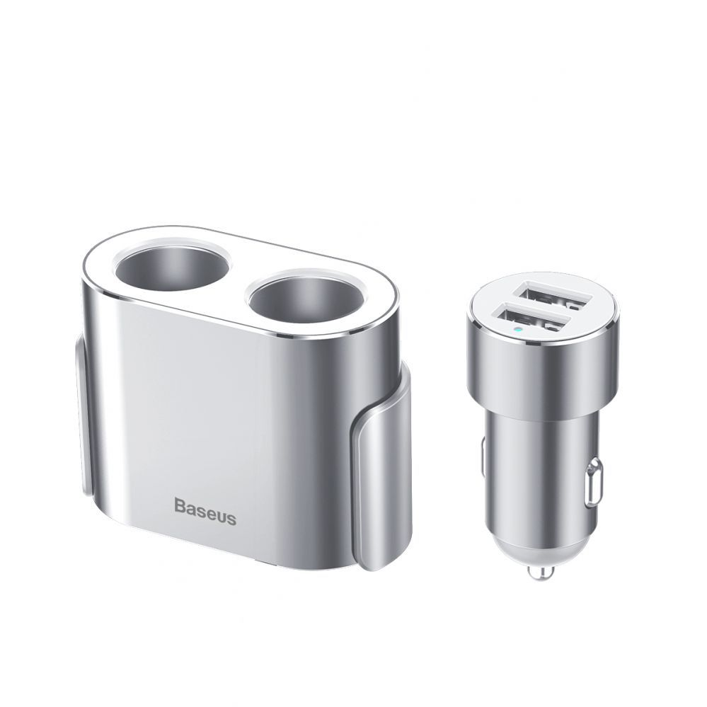 Baseus CRDYQ-0S splitter with 2 80W cigarette lighter sockets and 2 USB-A 3.1A ports – silver