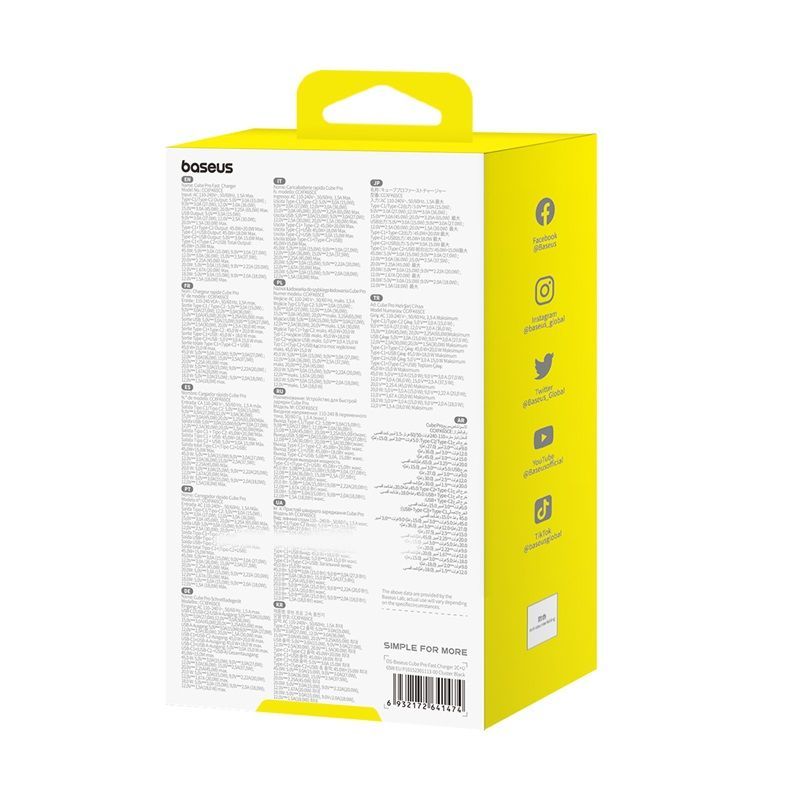 The most important advantages of the Baseus Cube Pro 65W charger: