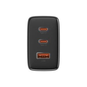 Baseus Cube Pro GaN charger with power up to 65W, with 2 USB-C ports and 1 USB-A port – black