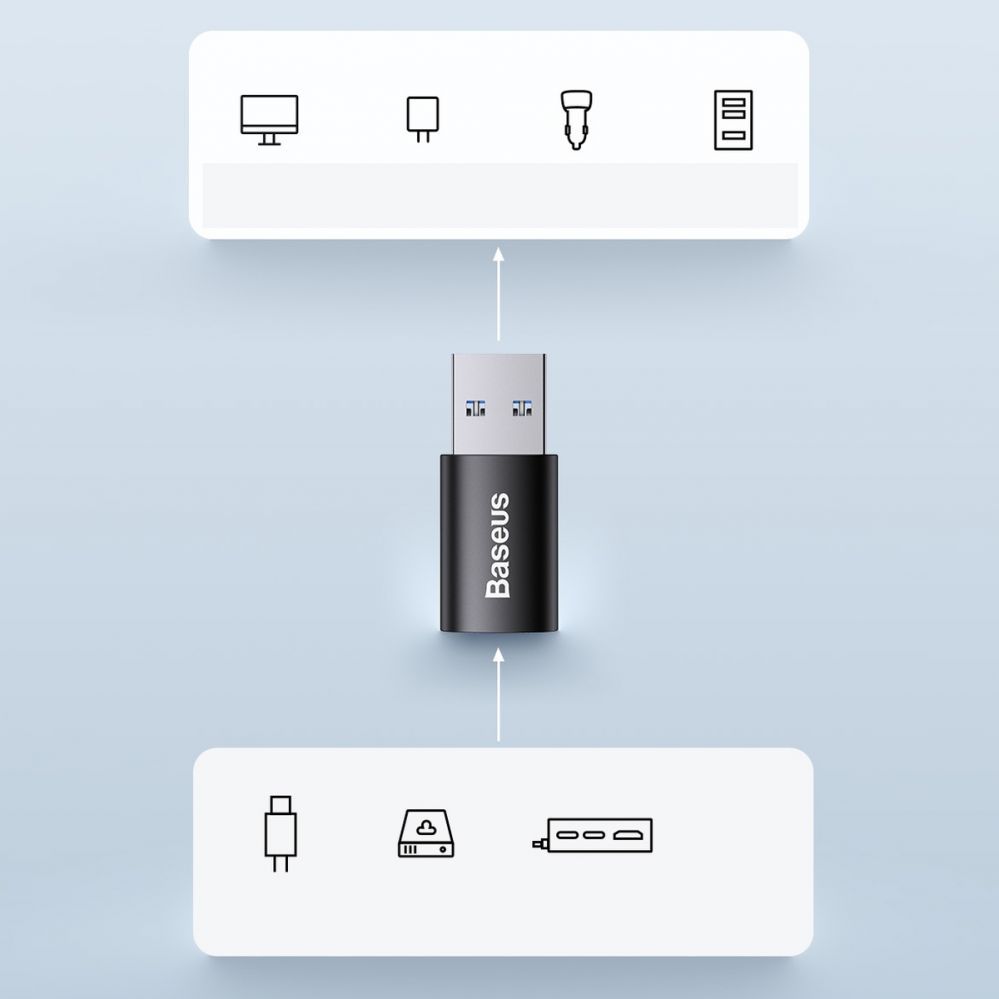 A small USB 3.1 to USB Type C adapter manufactured by Baseus . A practical adapter made of high-quality materials that allows you to connect a number of accessories with a USB Type-C plug to an ordinary USB port.