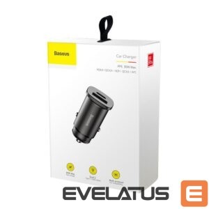 Adapteris Baseus Baseus Square PPS smart car charger with USB Quick Charge 4.0 QC 4.0 and USB-C PD 3.0 SCP ports black (CCALL-AS01)