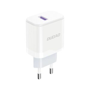 The Dudao A20EU wall charger is a practical solution for everyday use. Thanks to the power of 18W and support for fast charging, Power Delivery and Quick Charge 3.0, you can charge your devices quickly and efficiently. The fire- and impact-resistant housing and the intelligent protection chip ensure safety during use. The universal USB-A port means you can charge many different mobile devices without any problems. The set includes a USB-A – USB-C cable.