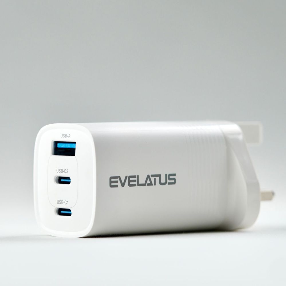 Adapteris Evelatus 65W Max Fast Charger UK USB-C1/USB-C1/USB-A White