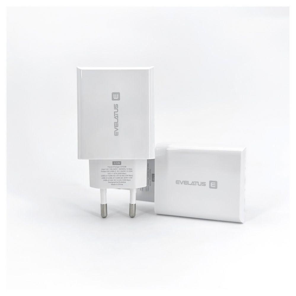 Adapteris Evelatus Evelatus Travel Charger EU Wall 3 Ports 32W USB-C / USB-A2 ETC06 White