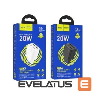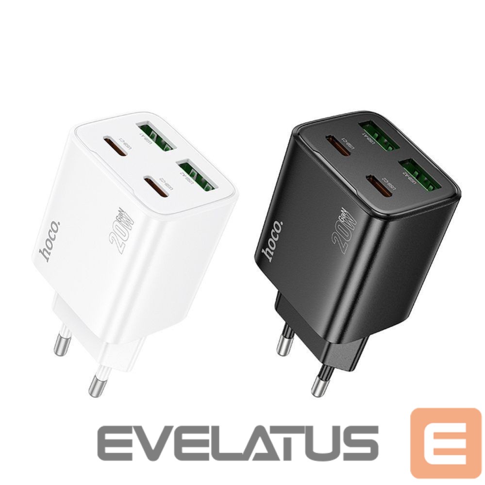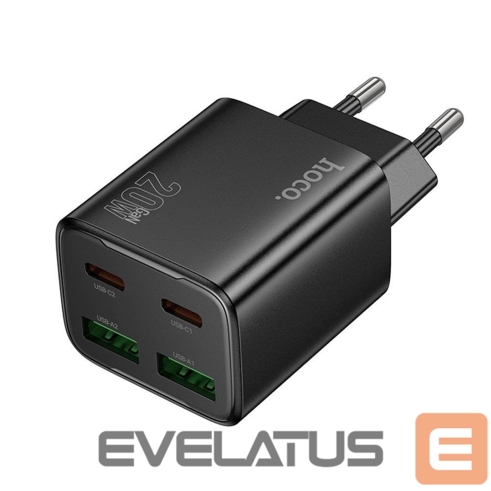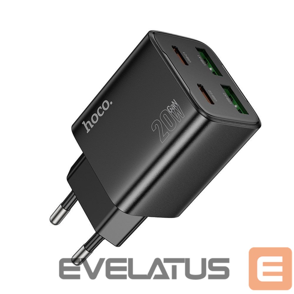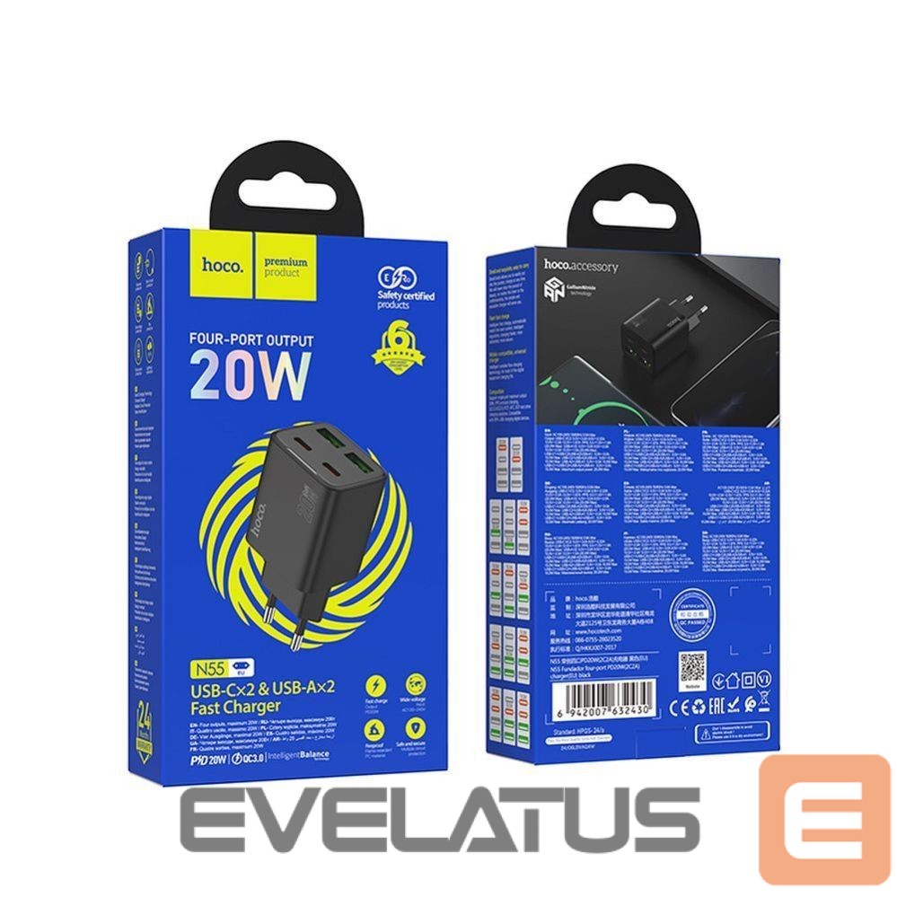 Adapteris Hoco Phone charger Hoco 2 x USB C + 2 x USB A QC3.0 PD 3A 20W N55 black